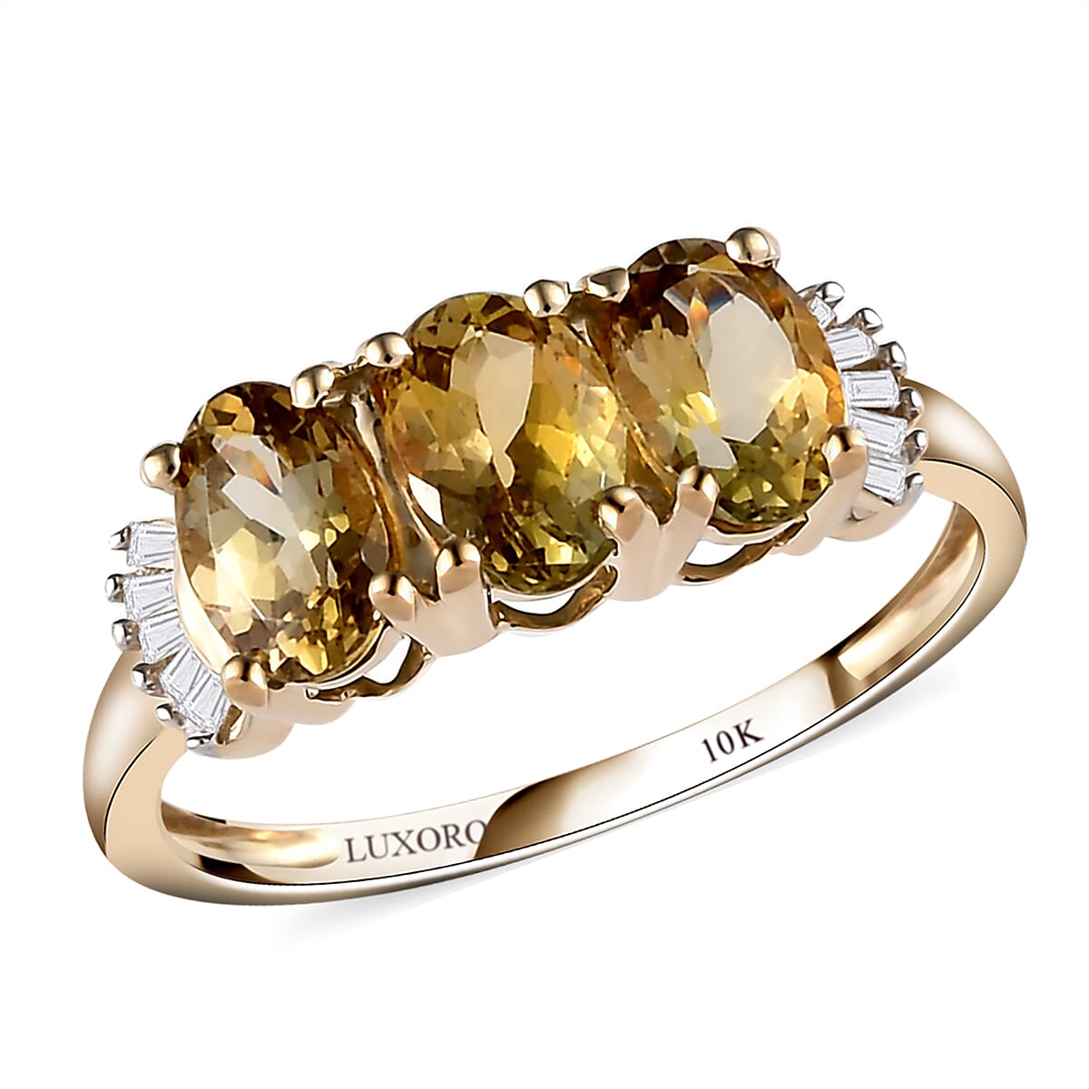 Luxoro 10K Yellow Gold Premium Golden Tanzanite and Diamond 3 Stone Ring (Size 11.0) 1.50 ctw