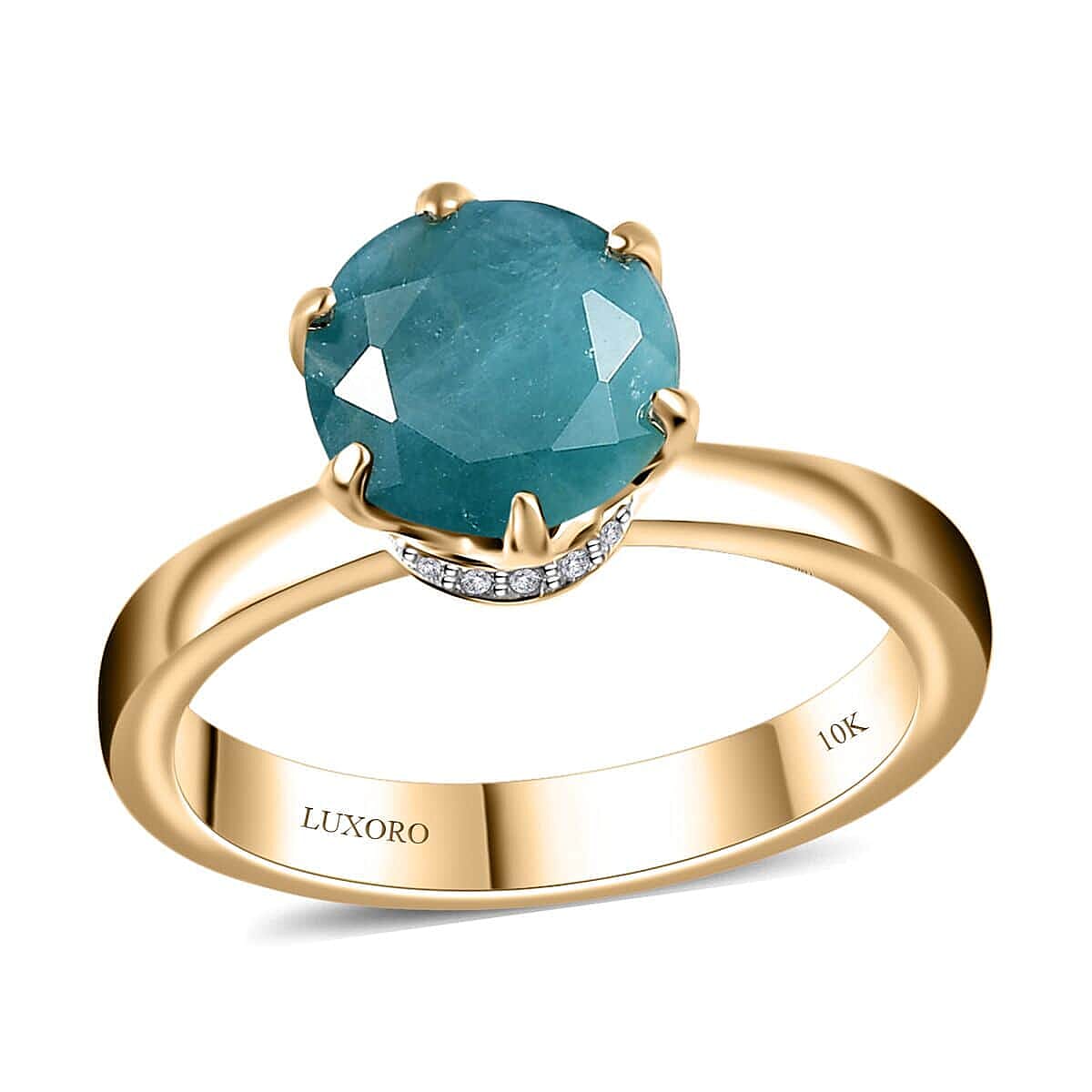 Luxoro 10K Yellow Gold Premium Grandidierite and G-H I2 Diamond Ring (Size 9.0) 2.25 ctw