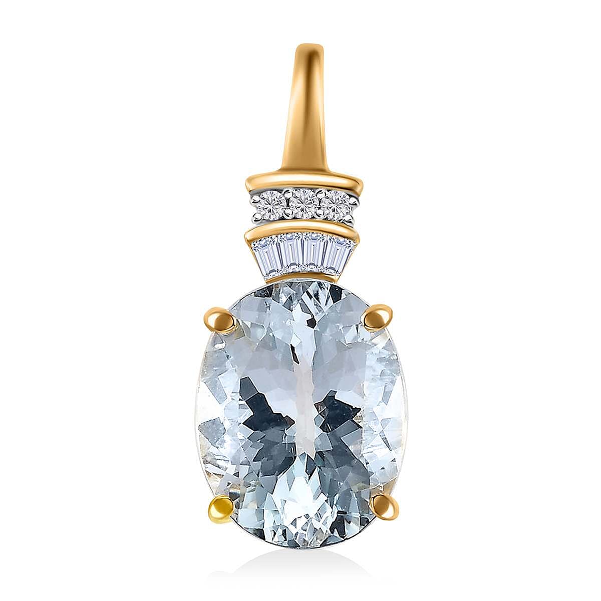 Luxoro 10K Yellow Gold Premium Mangoro Aquamarine and Diamond Pendant without Chain 3.10 ctw