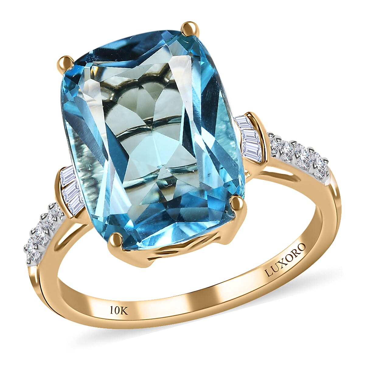 Luxoro 10K Yellow Gold Premium Marambaia Topaz and Diamond G-H I3 Ring (Size 9.0) 8.50 ctw