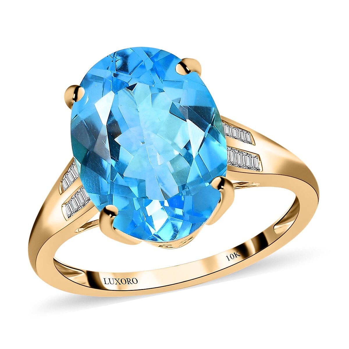 Luxoro 10K Yellow Gold Premium Marambaia Topaz and G-H I3 Diamond Ring (Size 10.0) 7.60 ctw