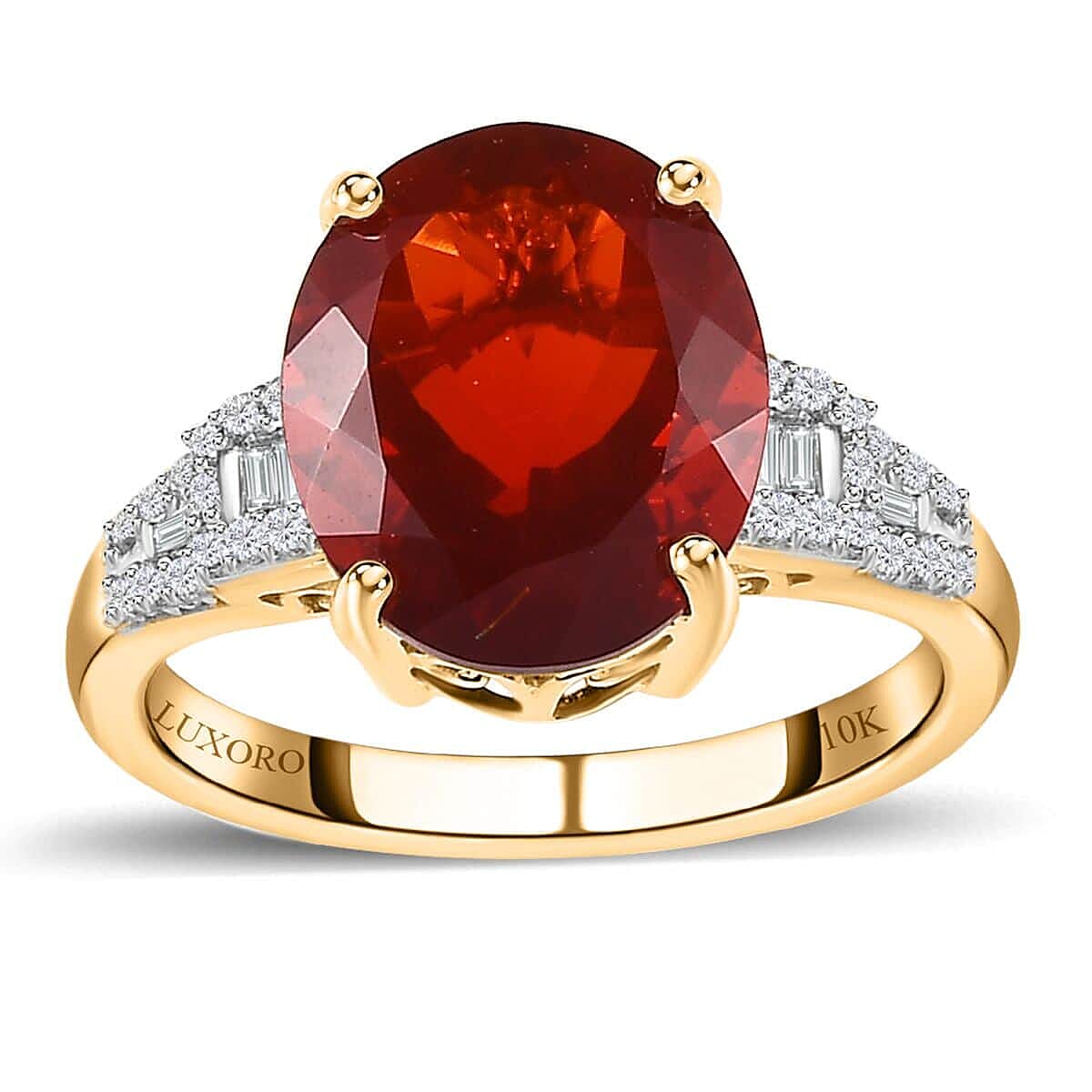 Luxoro 10K Yellow Gold Premium Mexican Cherry Fire Opal and Diamond Ring (Size 5.5) 3.40 ctw