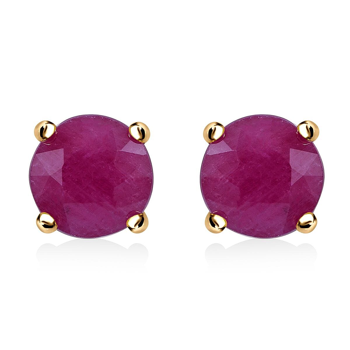 Luxoro 10K Yellow Gold Premium Mozambique Ruby Solitaire Stud Earrings 2.50 ctw