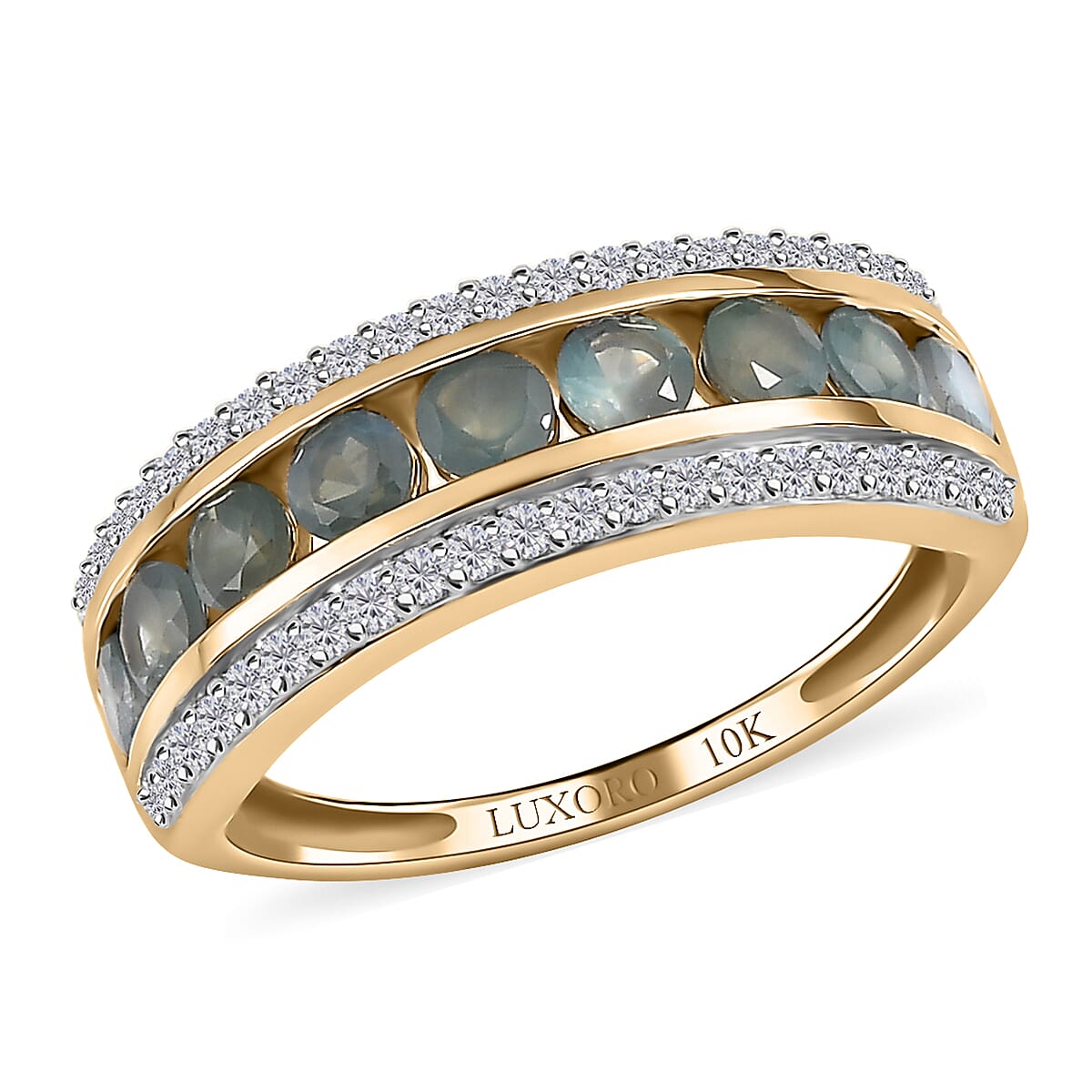 Step into the world of exclusivity and splendor with the Luxoro 10K yellow gold premium Narsipatnam alexandrite half eternity band ring. This exquisitely crafted piece from the esteemed Luxoro Collection is the epitome of alluring sophistication. Indulge in the tempting allure of channel-set Narsipatnam alexandrite rounds, interspersed with irresistible moissanite accents, all embedded on a stunning 10K yellow gold ring. A thoughtful and appreciative tribute to timeless elegance, this half eternity ring is as tantalizing as it is timeless.