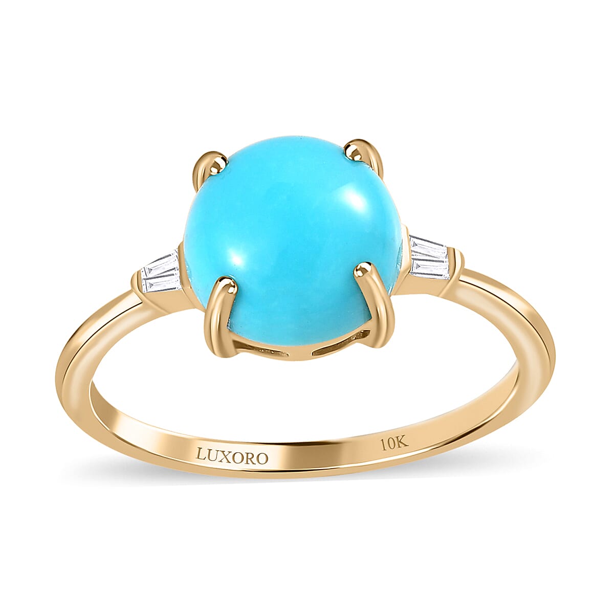 Luxoro 10K Yellow Gold Premium Sleeping Beauty Turquoise and Diamond Ring (Size 6.0) 2.40 ctw