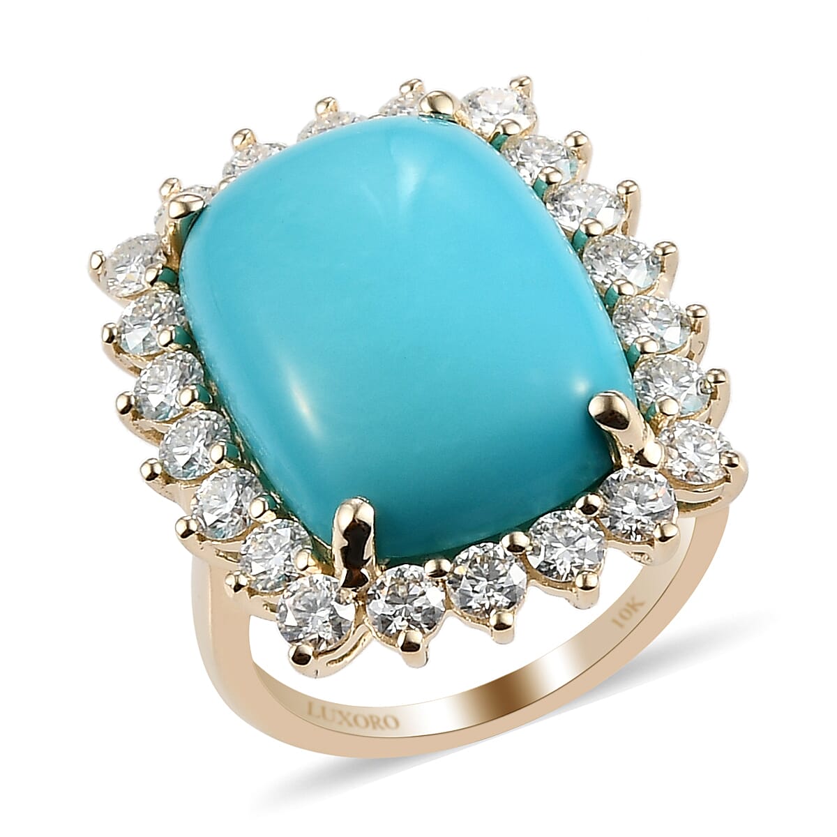 Luxoro 10K Yellow Gold Premium Sleeping Beauty Turquoise and Moissanite Halo Ring (Size 9.0) 11.40 ctw
