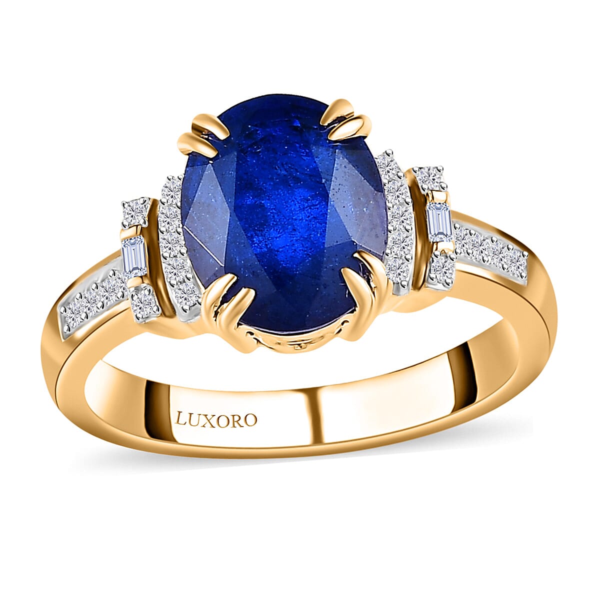 Luxoro 10K Yellow Gold Premium Tanzanian Blue Spinel (DF) and G-H I3 Diamond Ring (Size 7.0) 4.20 Grams 3.10 ctw