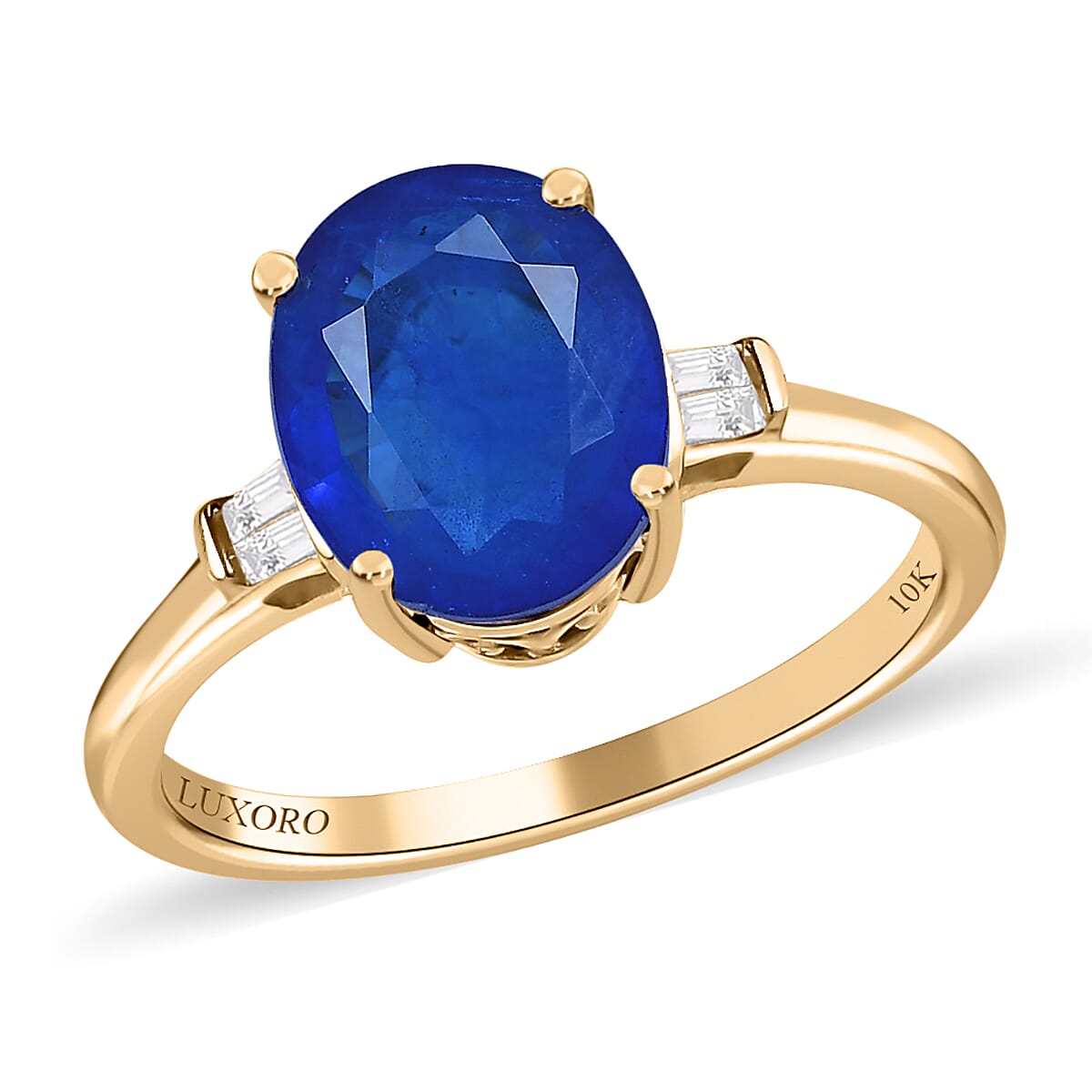 Introducing the epitome of elegance and sophistication - the Luxoro 10K yellow gold blue spinel and diamond ring. This exquisite piece is a true marvel of craftsmanship, with every detail carefully crafted to perfection. The ring's central blue spinel was the starting point for the design. Its deep, intense blue hue evokes a sense of royalty and elegance, making it the perfect centerpiece for a piece of high-end jewelry.