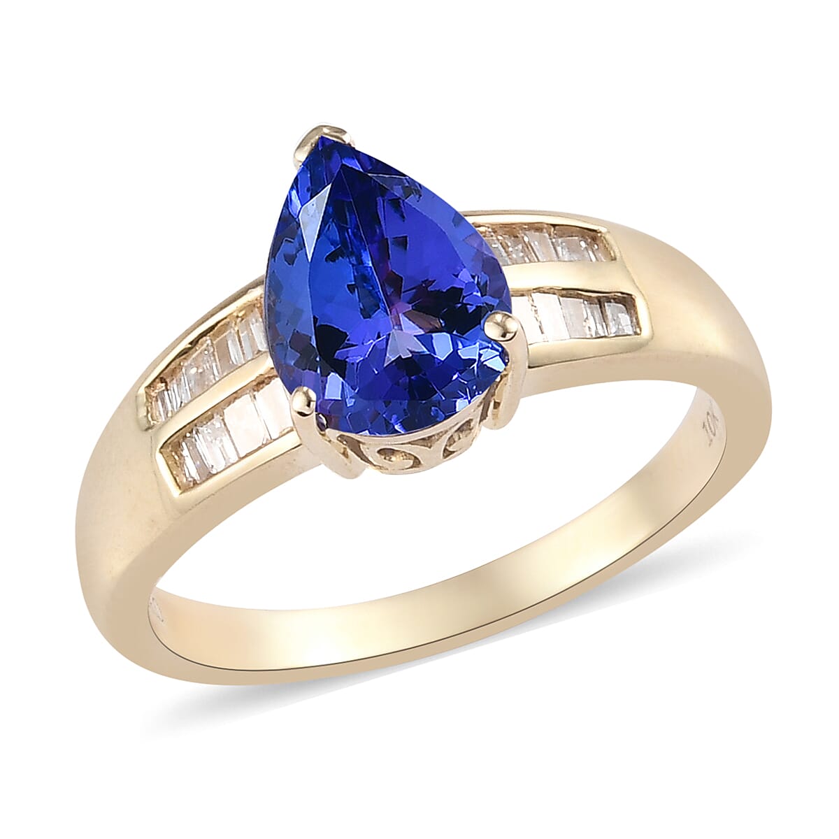 Luxoro 10K Yellow Gold Premium Tanzanite and Diamond Pear Shape Ring (Size 9.0) 2.00 ctw