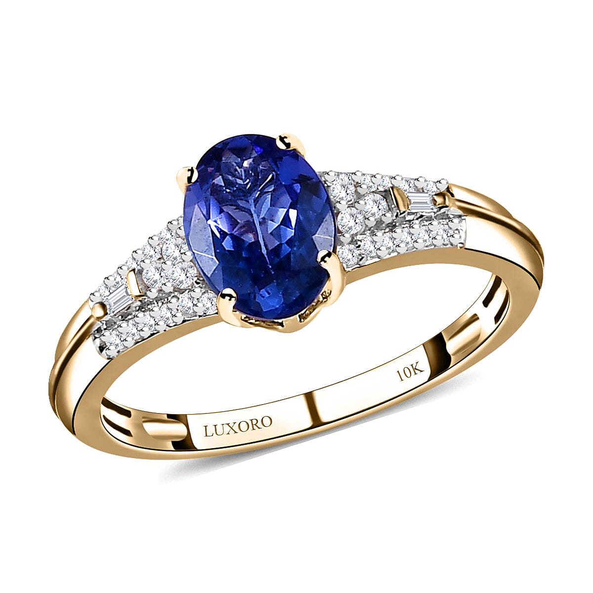 Luxoro 10K Yellow Gold Premium Tanzanite and Diamond Ring (Size 8.5) 1.25 ctw