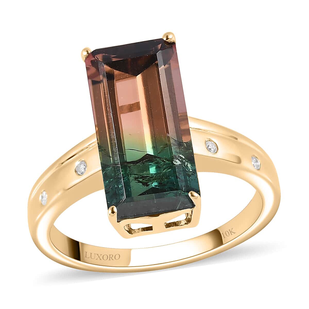 Luxoro 10K Yellow Gold Premium Watermelon Tourmaline and G-H I3 Diamond Ring (Size 6.5) 5.90 ctw