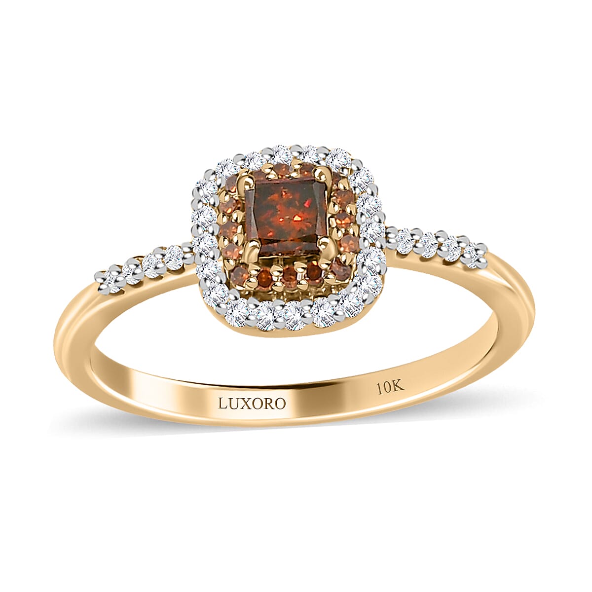 Luxoro 10K Yellow Gold Princess Cut Orange Diamond and White Diamond Halo Ring (Size 7.5) 0.50 ctw