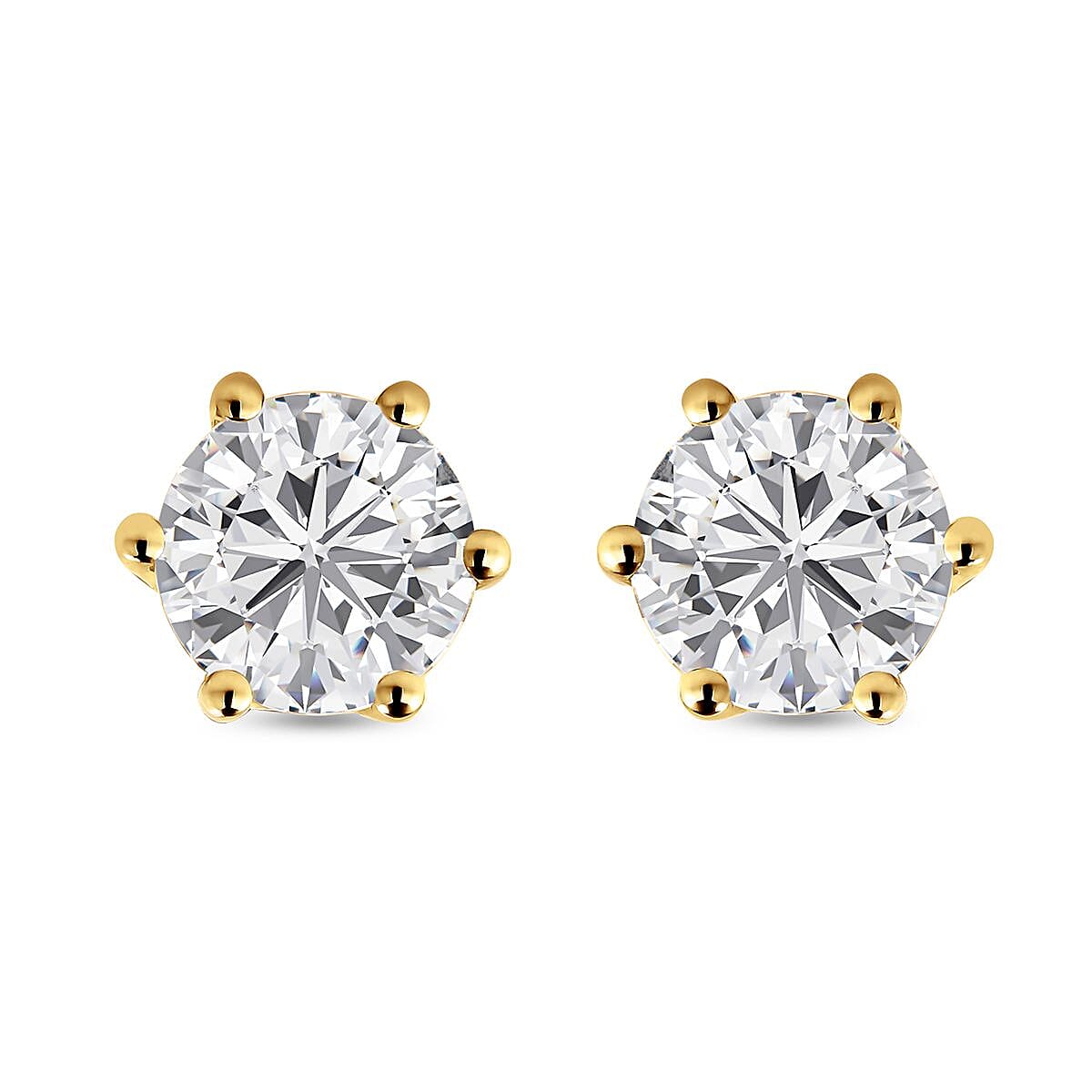 Inspired by the solitaire theme, these Luxoro yellow shield cut moissanite stud earrings bring forth the ecstasy of adorning elegant designs. Solitaire theme symbolizes the beautiful moments in the passage of life with the loved ones. A modern round shaped moissanite is set in the center, celebrating the minimal design with a touch of elegance. The refractive index of moissanite is higher than that of diamonds, offering enhanced fire and brilliance. The moissanite gemstone is ecofriendly as not many natural sources are used. The iconic prong setting uplifts the gemstone, shining all the light in the center from different directions, allowing more sparkle and efficient dispersion of light. These solitaire stud earrings are gracefully designed in 10K gold, dripping with an essence of grace and feminine charm. The tarnish resistant metal frame sustains longevity. These earrings can be an heirloom that can be passed on to generation for its intensified radiance and subtle beauty.
