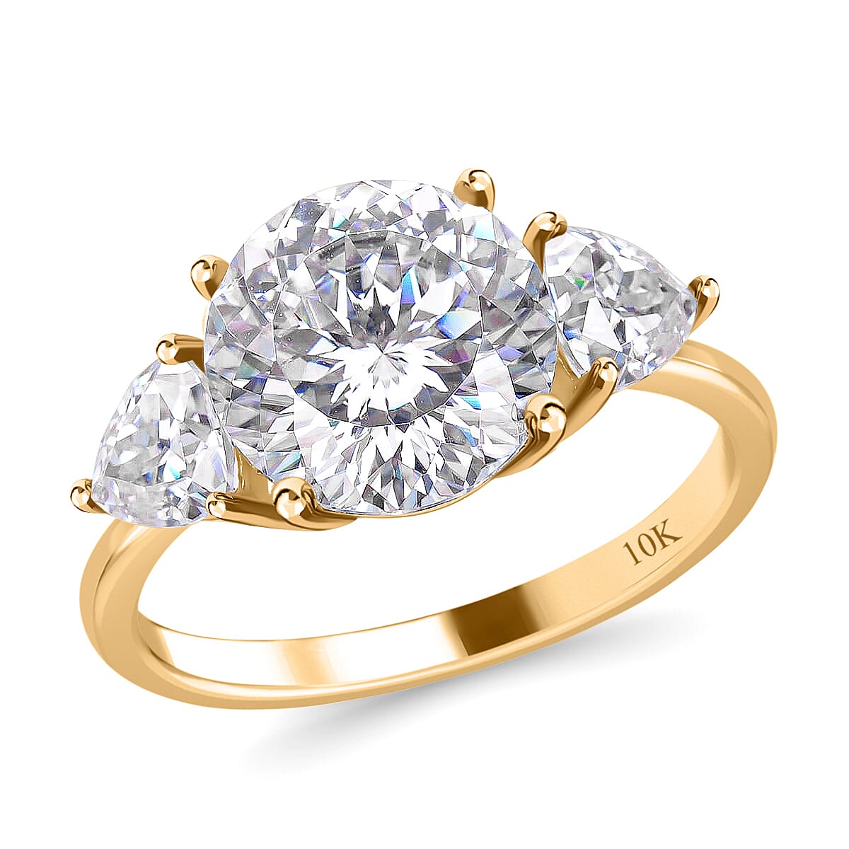 Luxoro 120 Facet Moissanite 4.40 ctw Trilogy Ring in 10K Yellow Gold, 3 Stone Engagement Ring For Women, Promise Rings (Size 8.0)