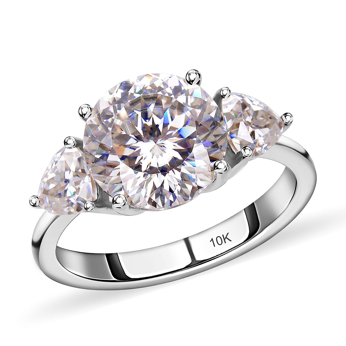 Luxoro 120 Facet Moissanite Trilogy Ring in 10K White Gold, Three Stone Engagement Ring For Women, Promise Rings