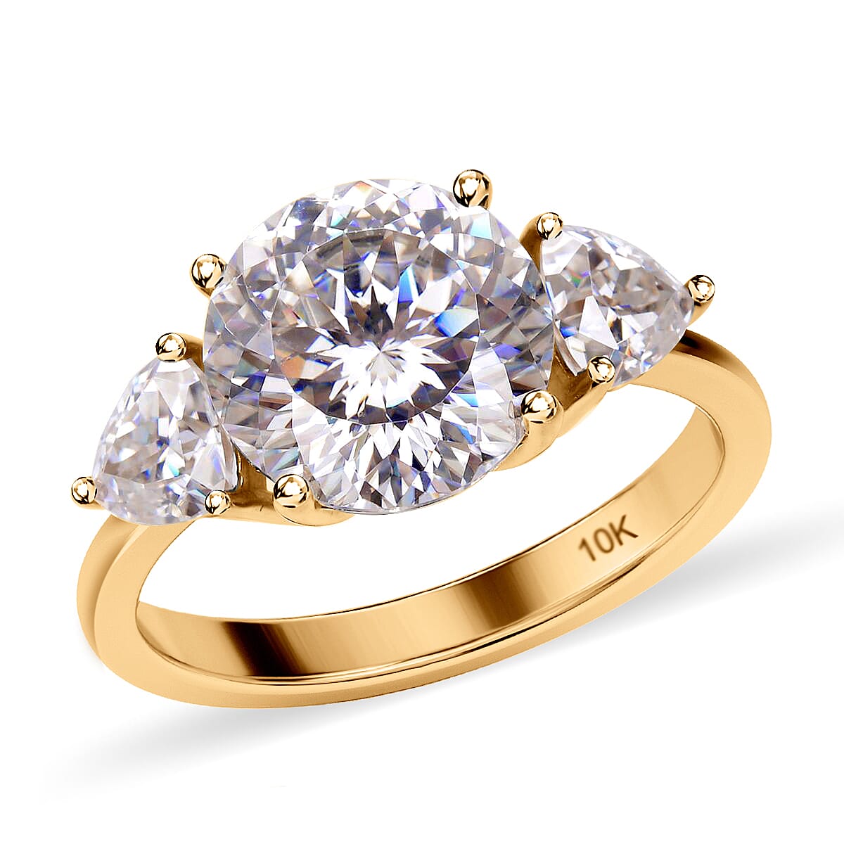 Luxoro 120 Facet Moissanite Trilogy Ring in 10K Yellow Gold, Three Stone Engagement Ring For Women, Promise Rings (Size 6.5)