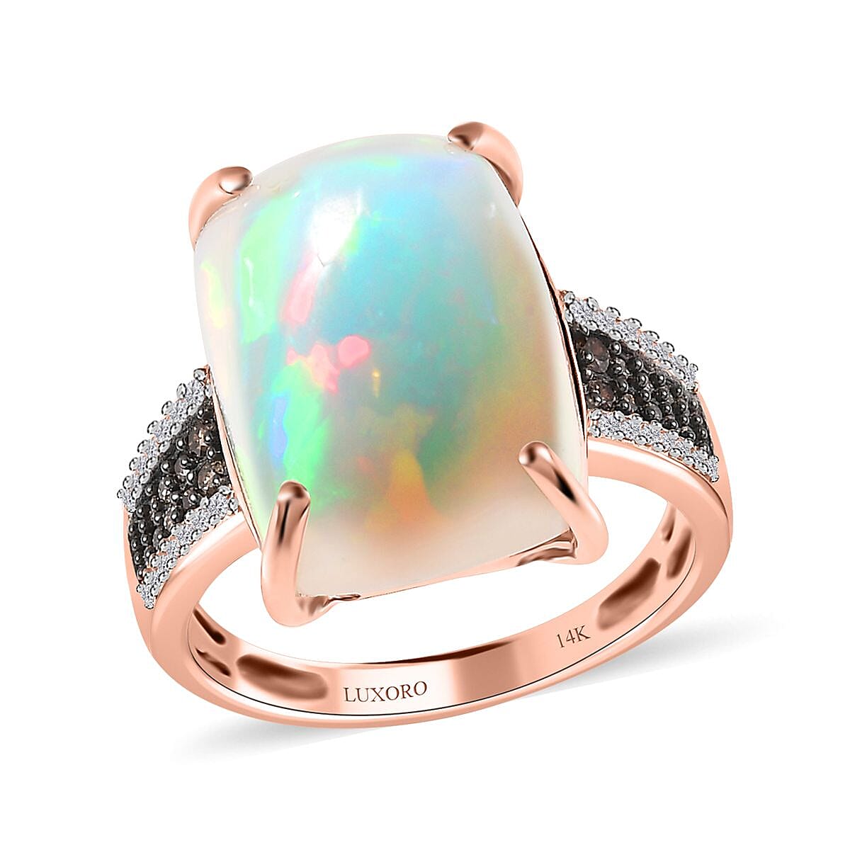 Luxoro 14K Rose Gold AAA Ethiopian Welo Opal, I3 Natural Champagne and White Diamond Ring (Size 8.5) 10.65 ctw