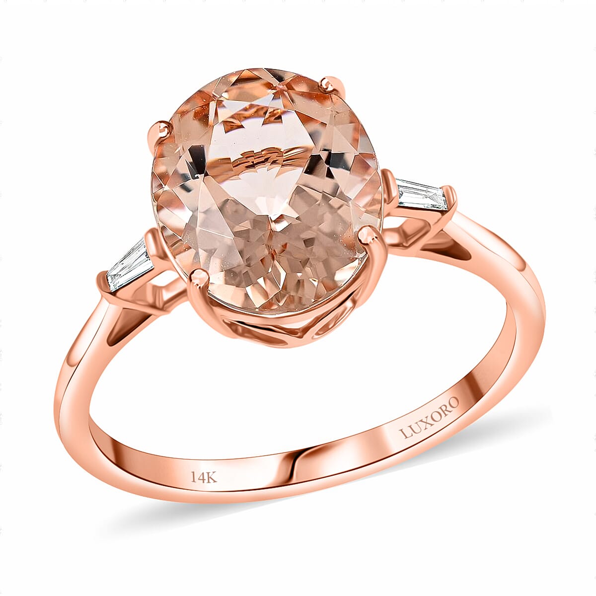 Luxoro 14K Rose Gold AAA Marropino Morganite and G-H I2 Diamond Ring (Size 7.0) 3.00 ctw