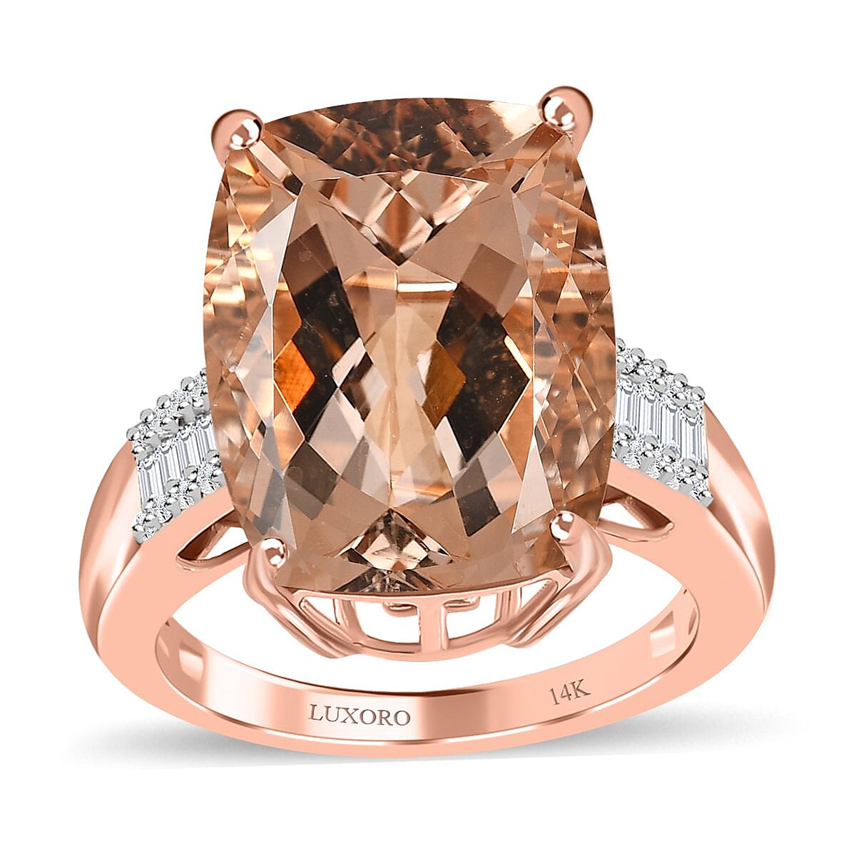 Luxoro 14K Rose Gold AAA Marropino Morganite and G-H I2 Diamond Ring (Size 7.0) 4.60 Grams 10.20 ctw