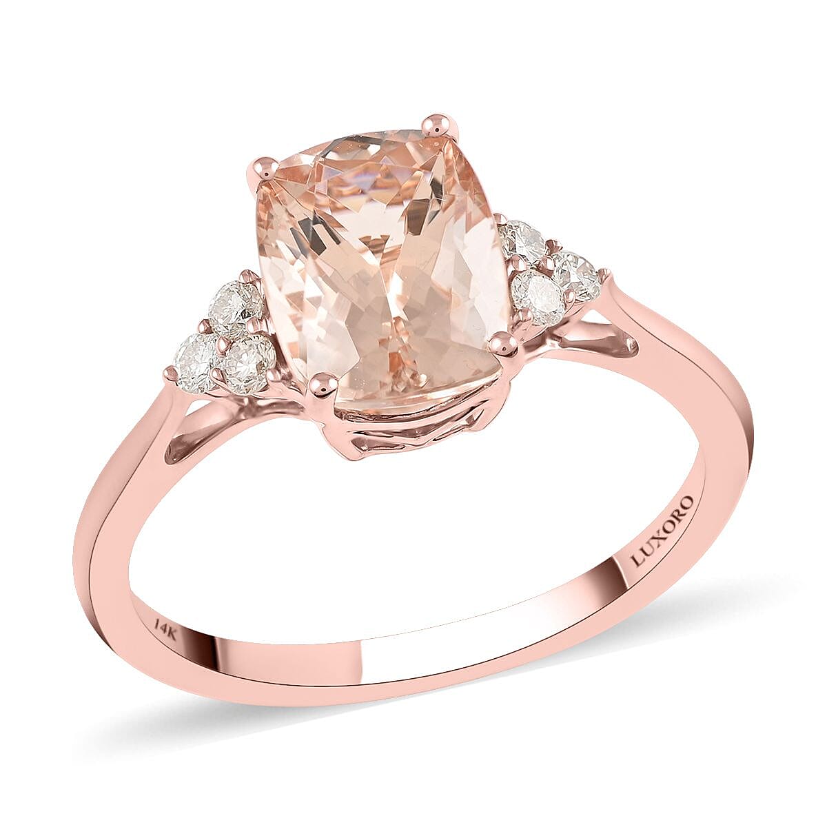 Luxoro 14K Rose Gold AAA Marropino Morganite and G-H I2 Diamond Ring (Size 9.0) 2.30 ctw