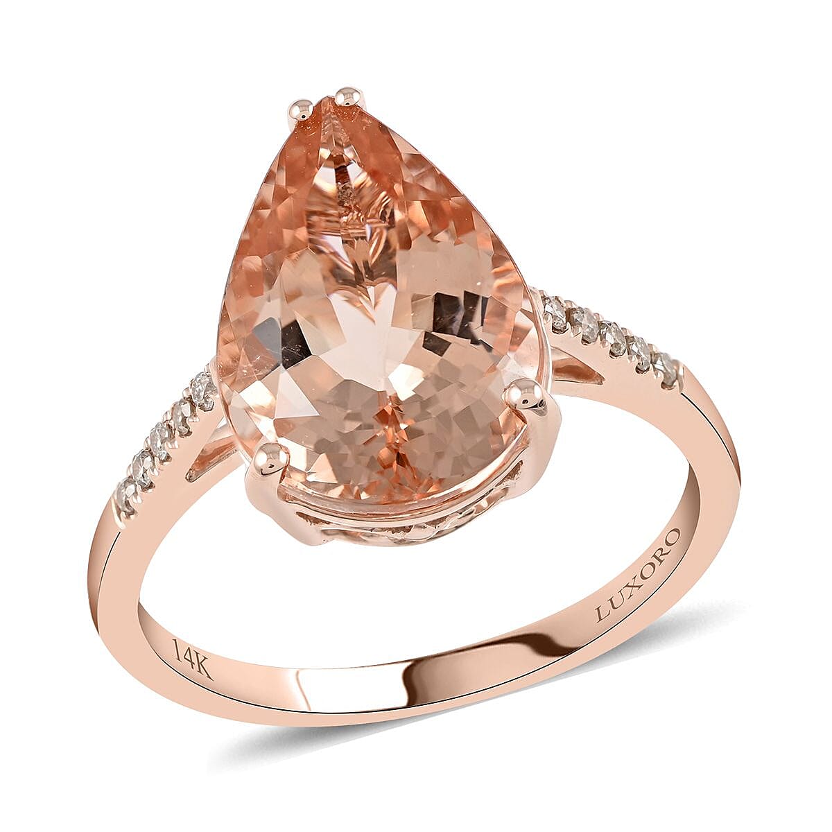 Luxoro 14K Rose Gold AAA Marropino Morganite and G-H I2 Diamond Ring (Size 9.0) 4.70 ctw