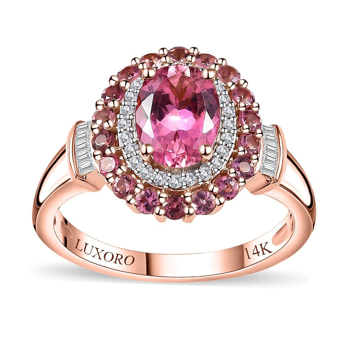 Luxoro 14K Rose Gold AAA Morro Redondo Pink Tourmaline and I2 Diamond Double Halo Ring (Size 12.0) 4 Grams 1.85 ctw