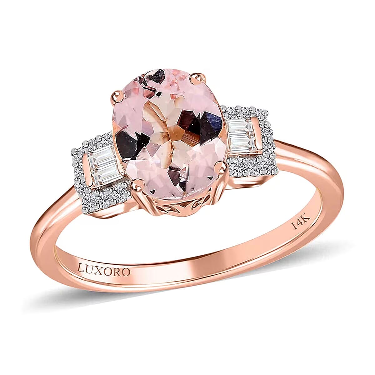 Luxoro 14K Rose Gold AAA Pink Morganite and Moissanite Ring (Size 8.5) 1.65 ctw