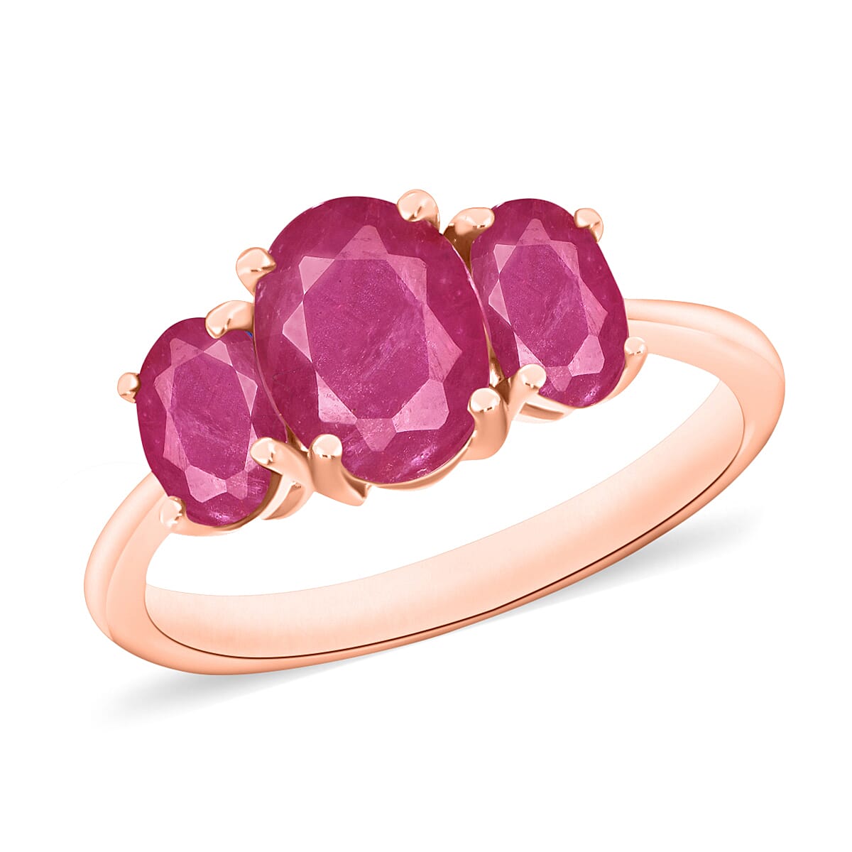 Luxoro 14K Rose Gold Premium Mozambique Ruby 3 Stone Ring (Size 11.0) 4 Grams 2.75 ctw (Del. in 10-12 Days)