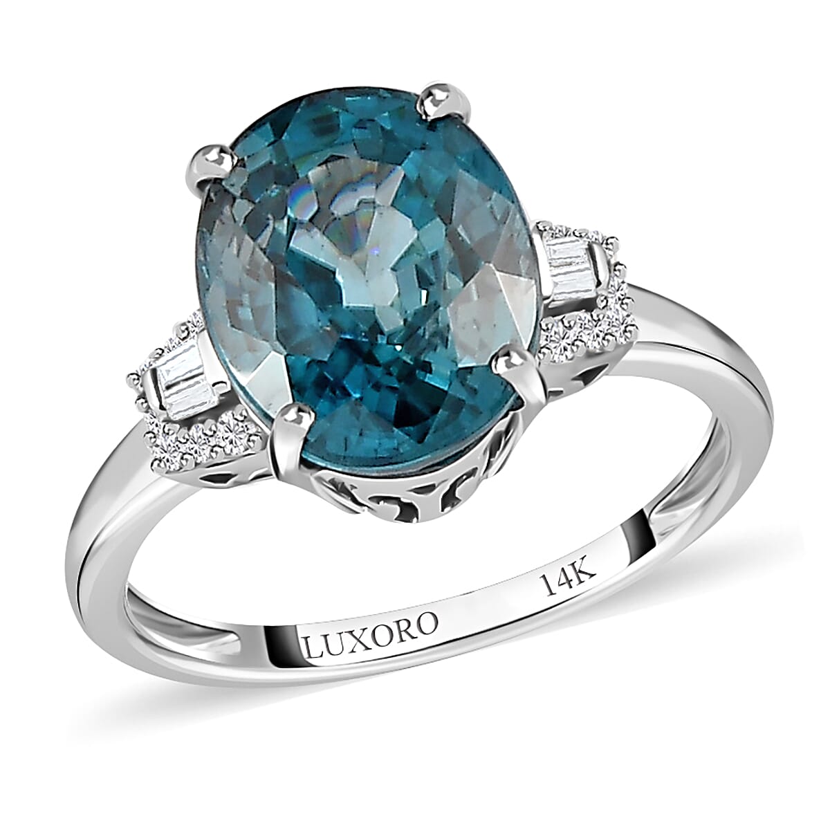Luxoro 14K White Gold AAA Cambodian Blue Zircon and G-H I3 Diamond Ring (Size 5.5) 6.40 ctw