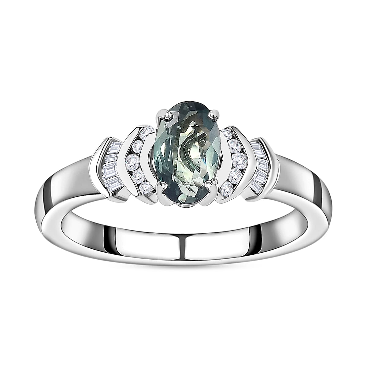 Luxoro 14K White Gold AAA Narsipatnam Alexandrite and G-H I3 Diamond Ring (Size 9.0) 0.90 ctw