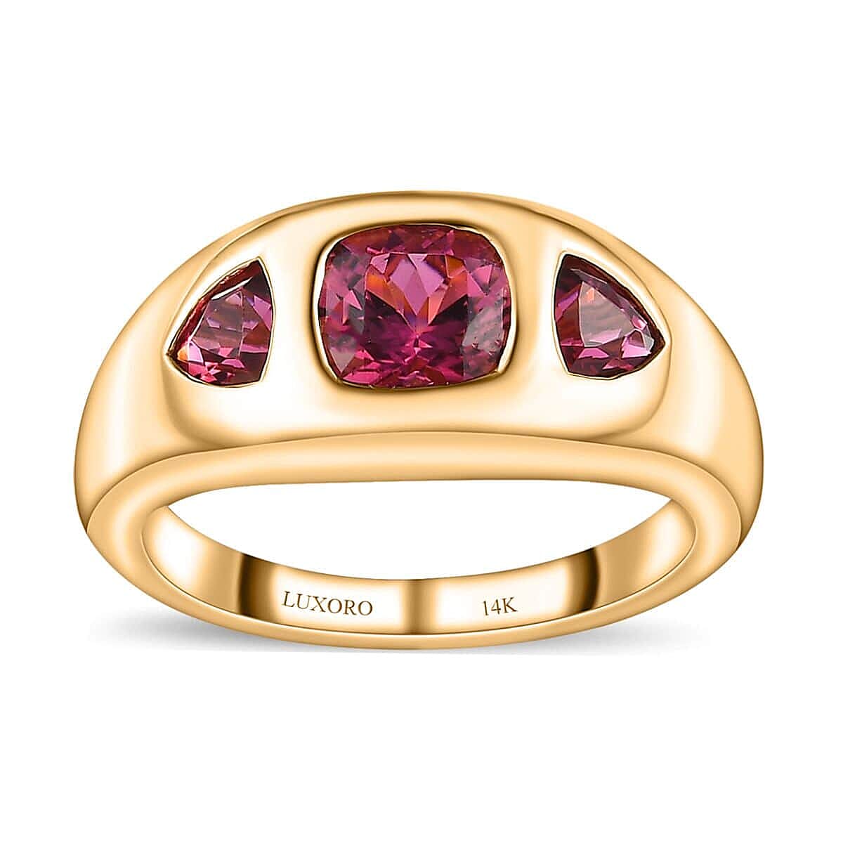 Luxoro 14K Yellow Gold AAA Calabar Tourmaline, Ouro Fino Rubellite 3 Stone Ring (Size 10.0) 1.50 ctw
