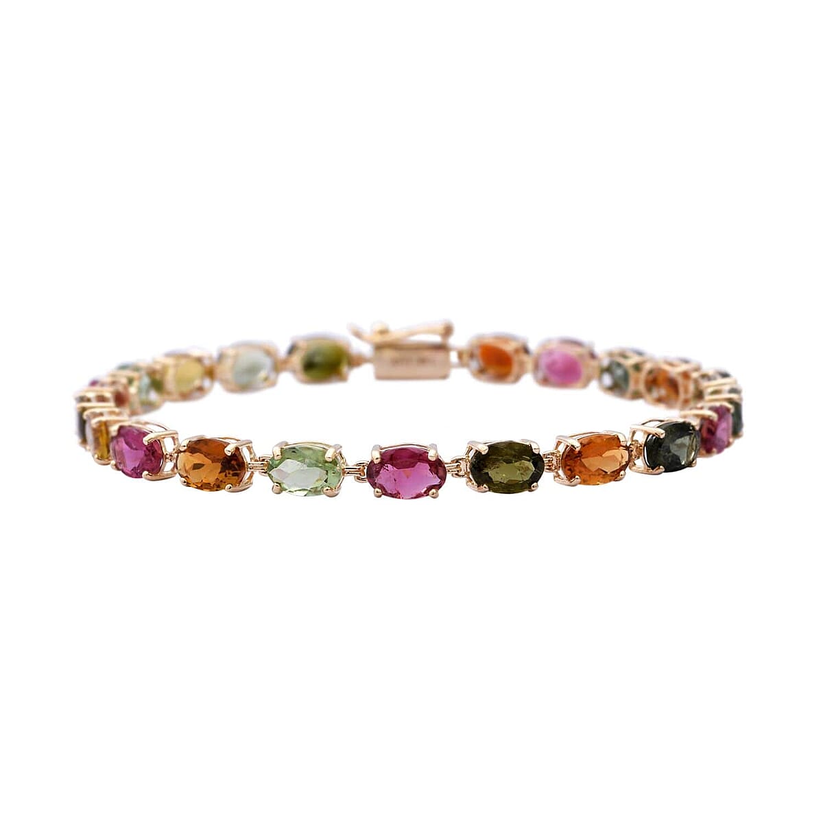 Luxoro 14K Yellow Gold AAA Multi-Tourmaline Tennis Bracelet (7.25 In) 10.25 ctw
