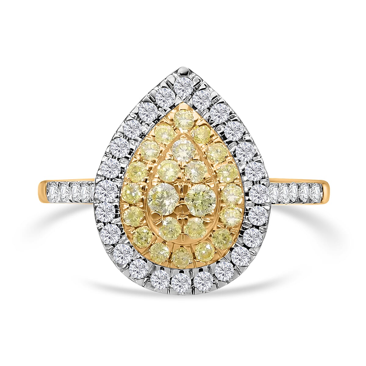 Luxoro 14K Yellow Gold Natural Yellow and White Diamond I2-I3 Ring (Size 9.0) 1.00 ctw