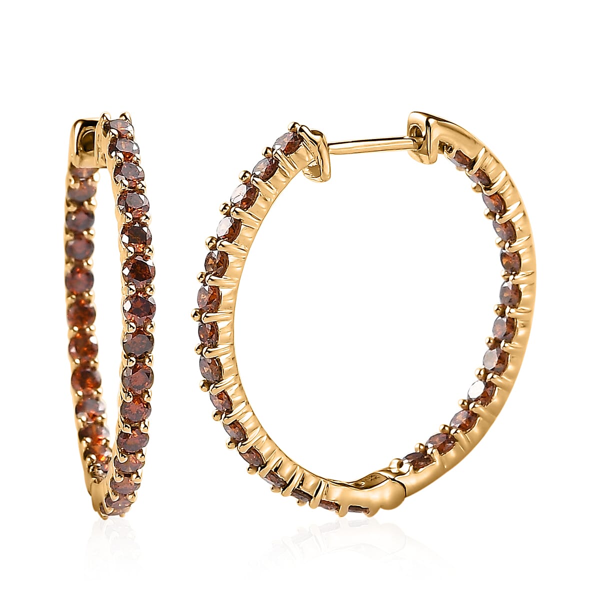 Luxoro 14K Yellow Gold Orange Diamond Hoop Earrings 2.00 ctw
