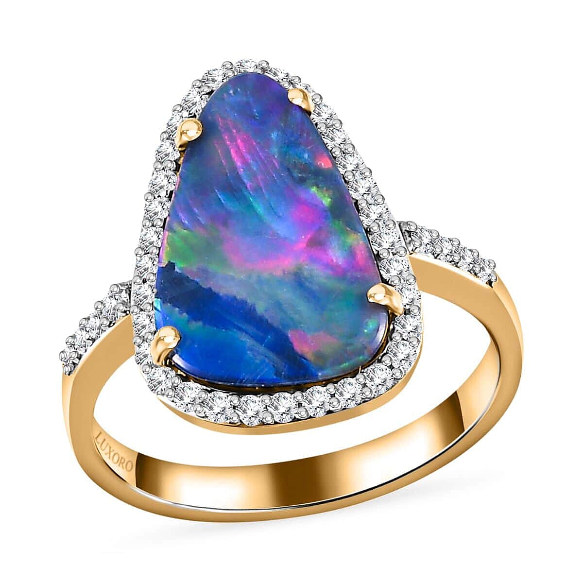 Luxoro 14K Yellow Gold Premium Boulder Opal Doublet and G-H I2 Diamond Halo Ring (Size 7.5) 3.60 ctw