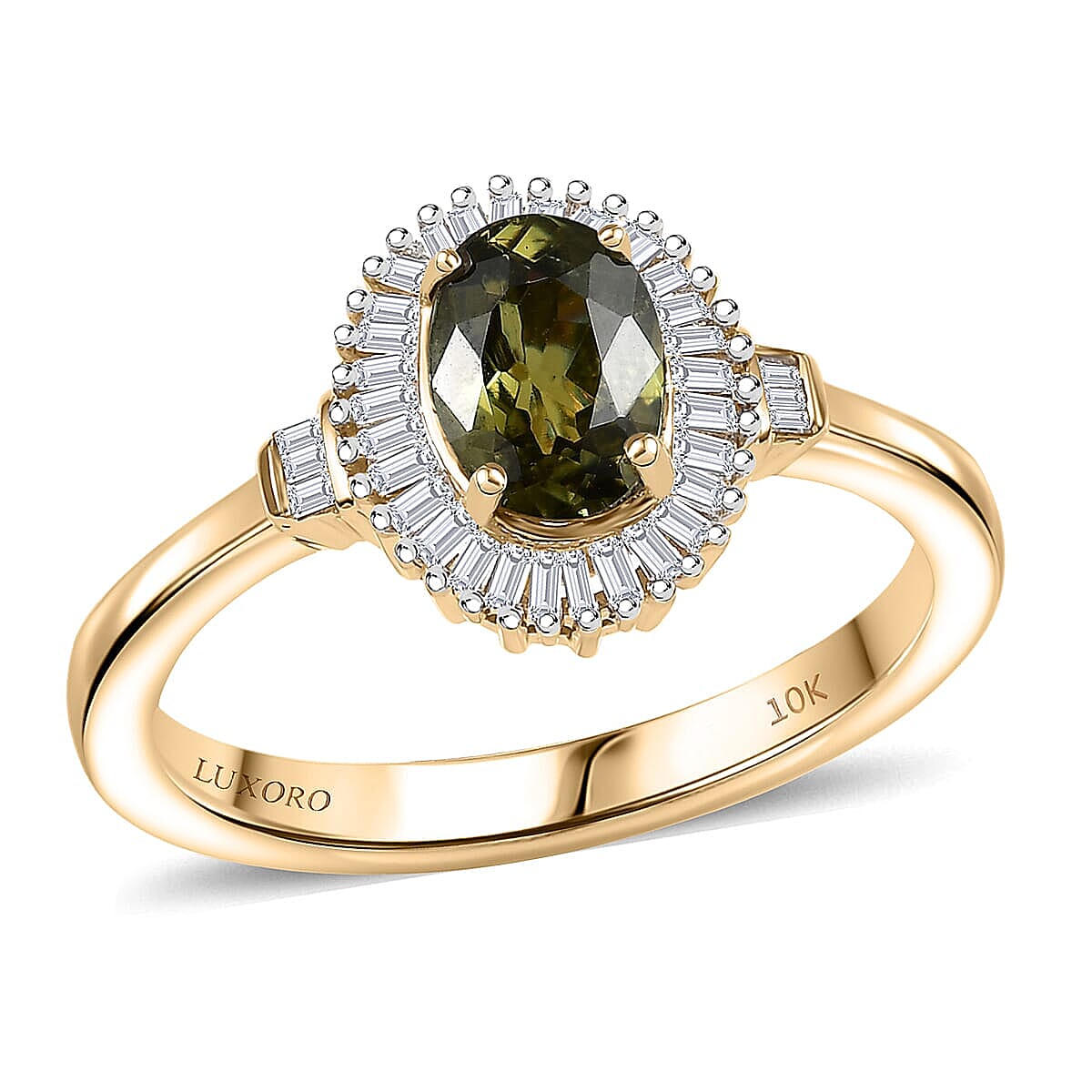 Luxoro AAA Ambanja Demantoid Garnet, Diamond Spark Ring in 10K Yellow Gold 1.15 ctw (Size 9.5)