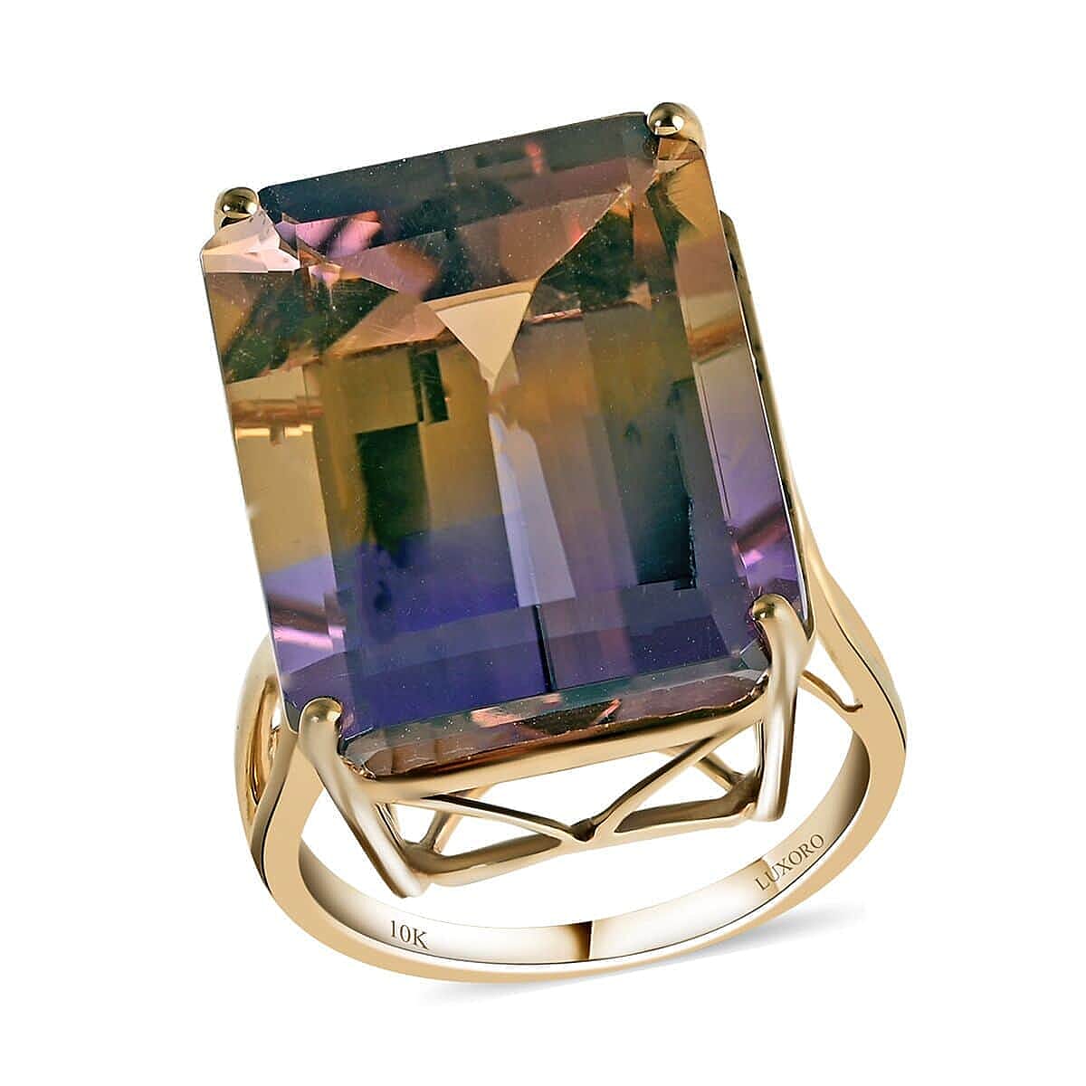 Luxoro AAA Anahi Ametrine 23.85 ctw Solitaire Ring in 10K Yellow Gold (Size 8.5)