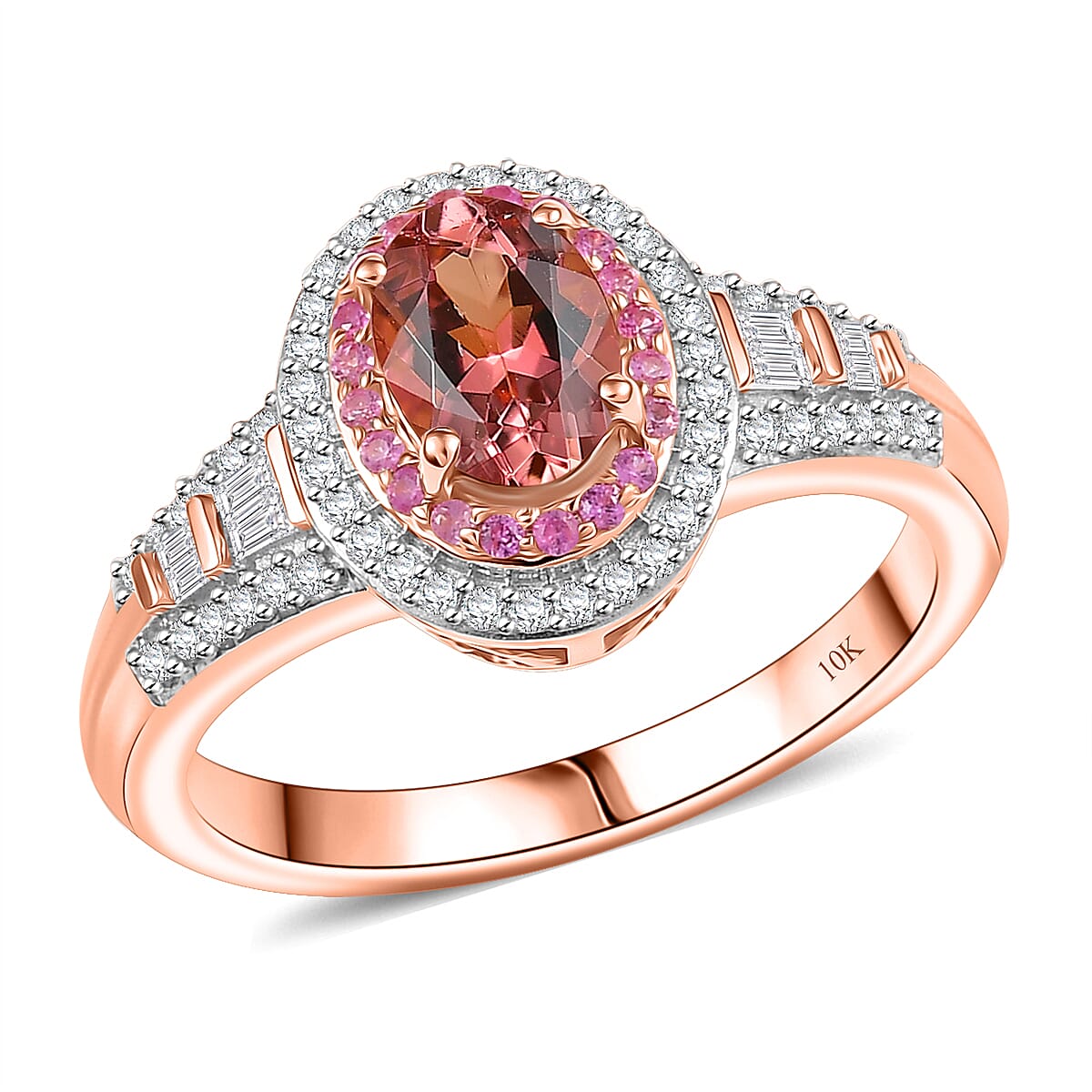 Luxoro AAA Blush Tourmaline, Pink Sapphire and I2 Diamond 1.15 ctw Blush Majesty Ring in 10K Rose Gold (Size 9.0)