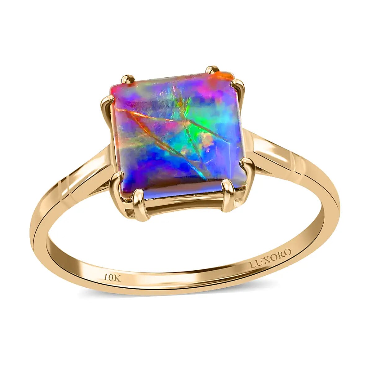 Luxoro AAA Canadian Ammolite Solitaire Ring | Certified Ammolite Ring | 10K Yellow Gold Ring | Gold Solitaire Ring | Wedding Ring (Size 7.0)