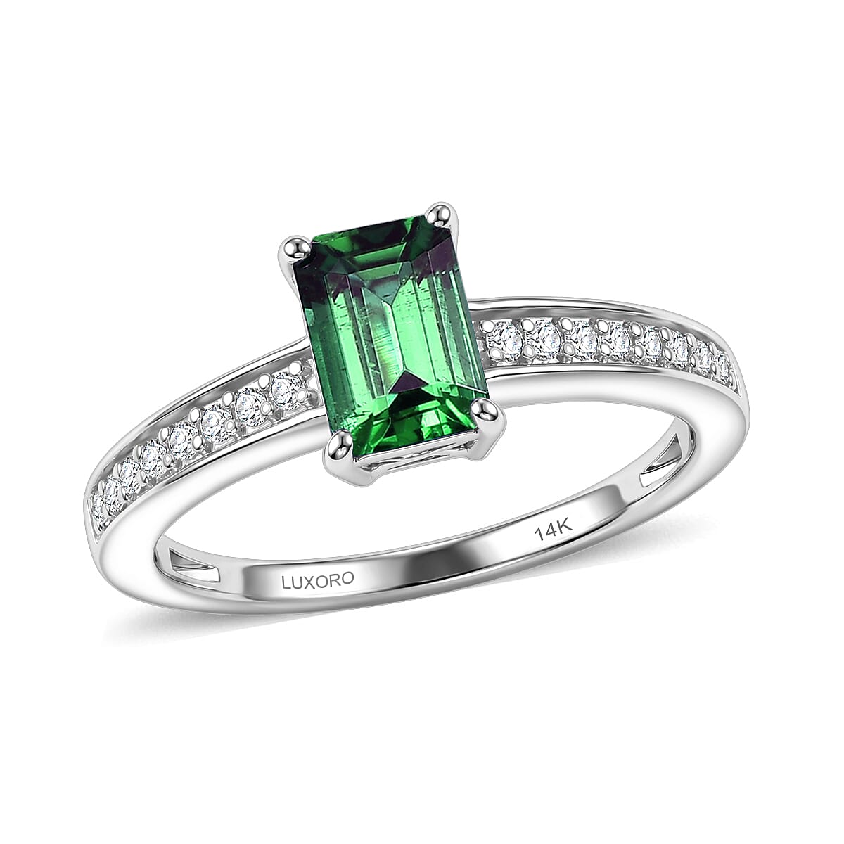 Luxoro AAA Kagem Zambian Emerald and Diamond I2 1.25 ctw Ring in 14K White Gold (Size 5.0)
