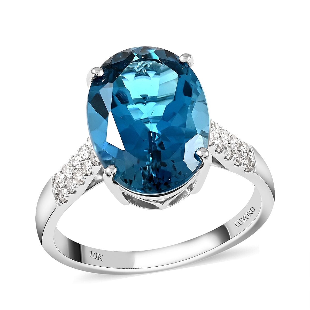 Luxoro AAA London Blue Topaz Ring, Certified & Appraised Blue Topaz Ring, Diamond Accent Ring, 10K White Gold, Wedding Rings 7.25 ctw (Size 7.0)