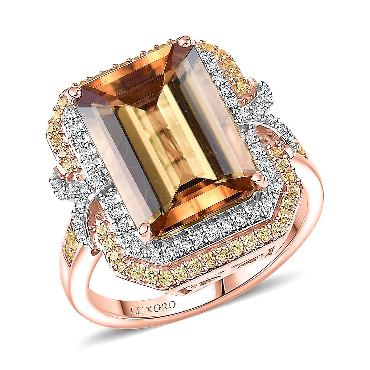 Luxoro AAA Marialite, Yellow Sapphire and Diamond I2 7.70 ctw Art Deco Ring in 10K Rose Gold (Size 5.0) 5.35 Grams