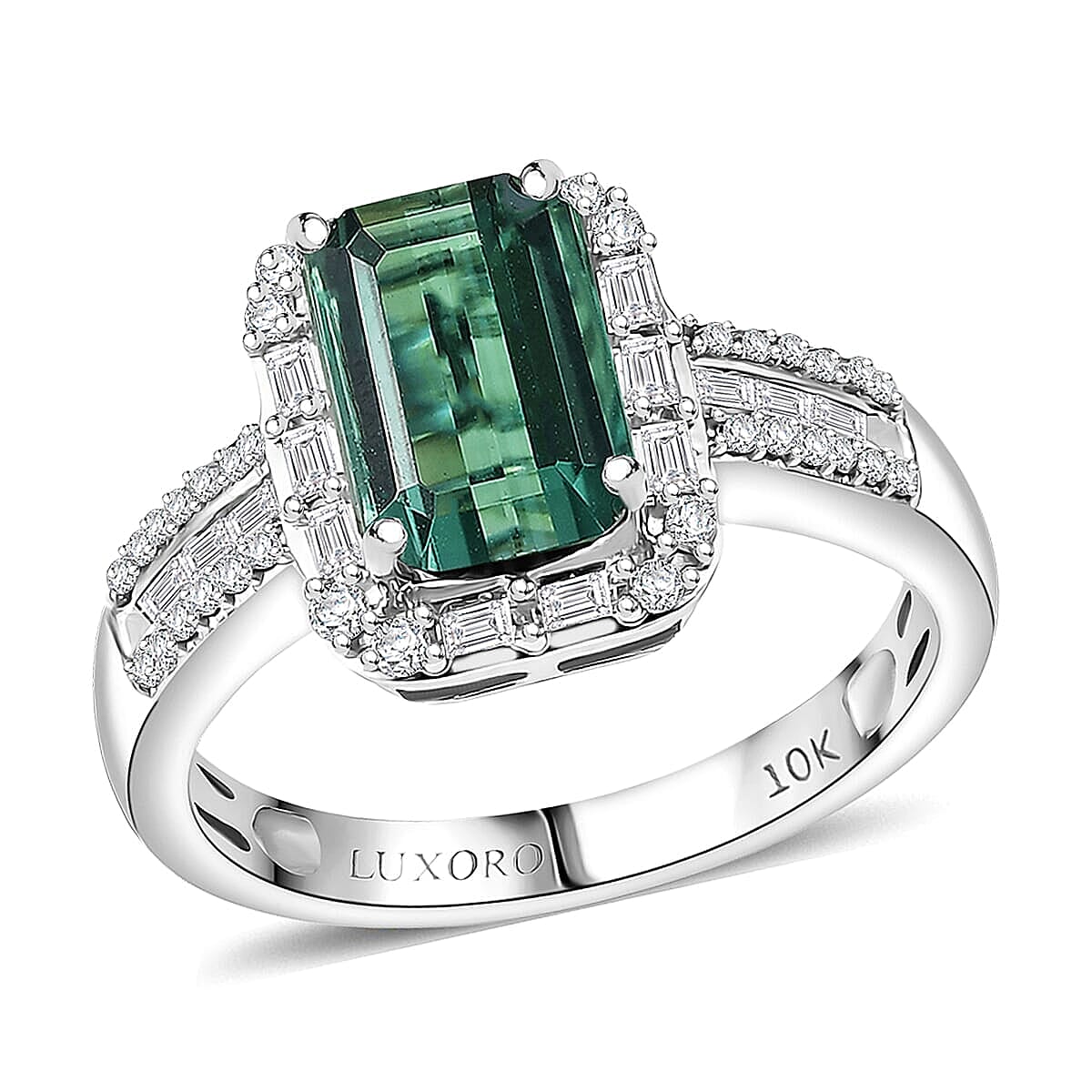Command attention with this Luxoro mint tourmaline ring in 10k white gold. The luxury halo ring pairs beautifully with diamonds for sophisticated contrast. You'll appreciate how this elegant 10K white gold ring reflects your distinctive personal style.