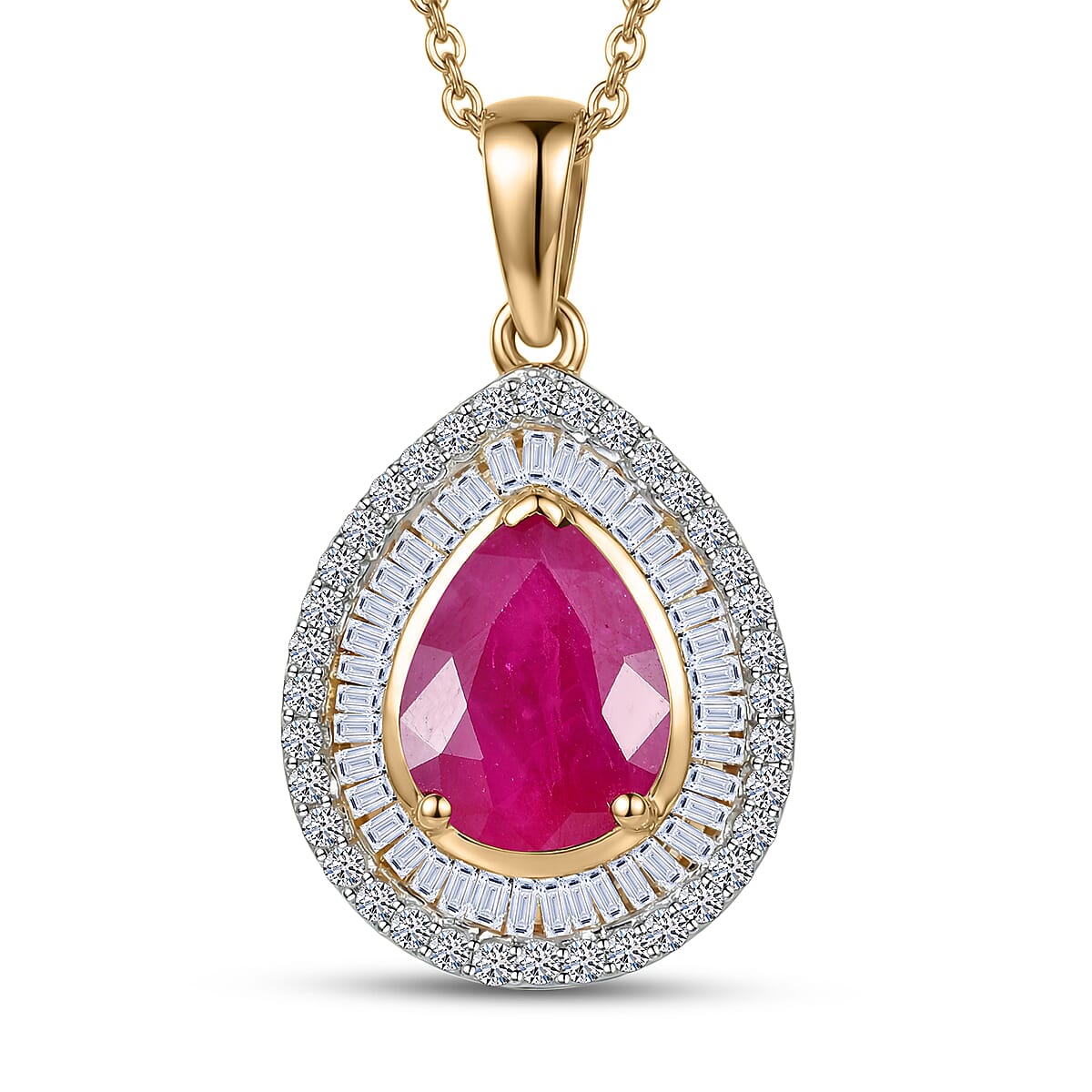 Luxoro AAA Montepuez Ruby and Diamond G-H, I2 2.30 ctw Flame Pear Pendant Necklace in 10K Yellow Gold (20 Inches) (Del. in 10-12 Days)