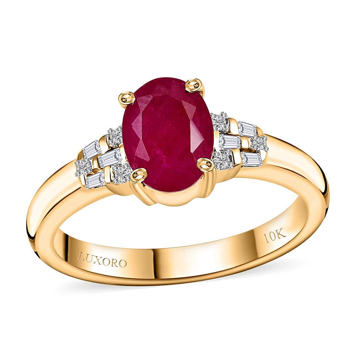 Luxoro AAA Montepuez Ruby and G-H I2 Diamond 1.90 ctw Ring in 10K Yellow Gold (Size 7.5)