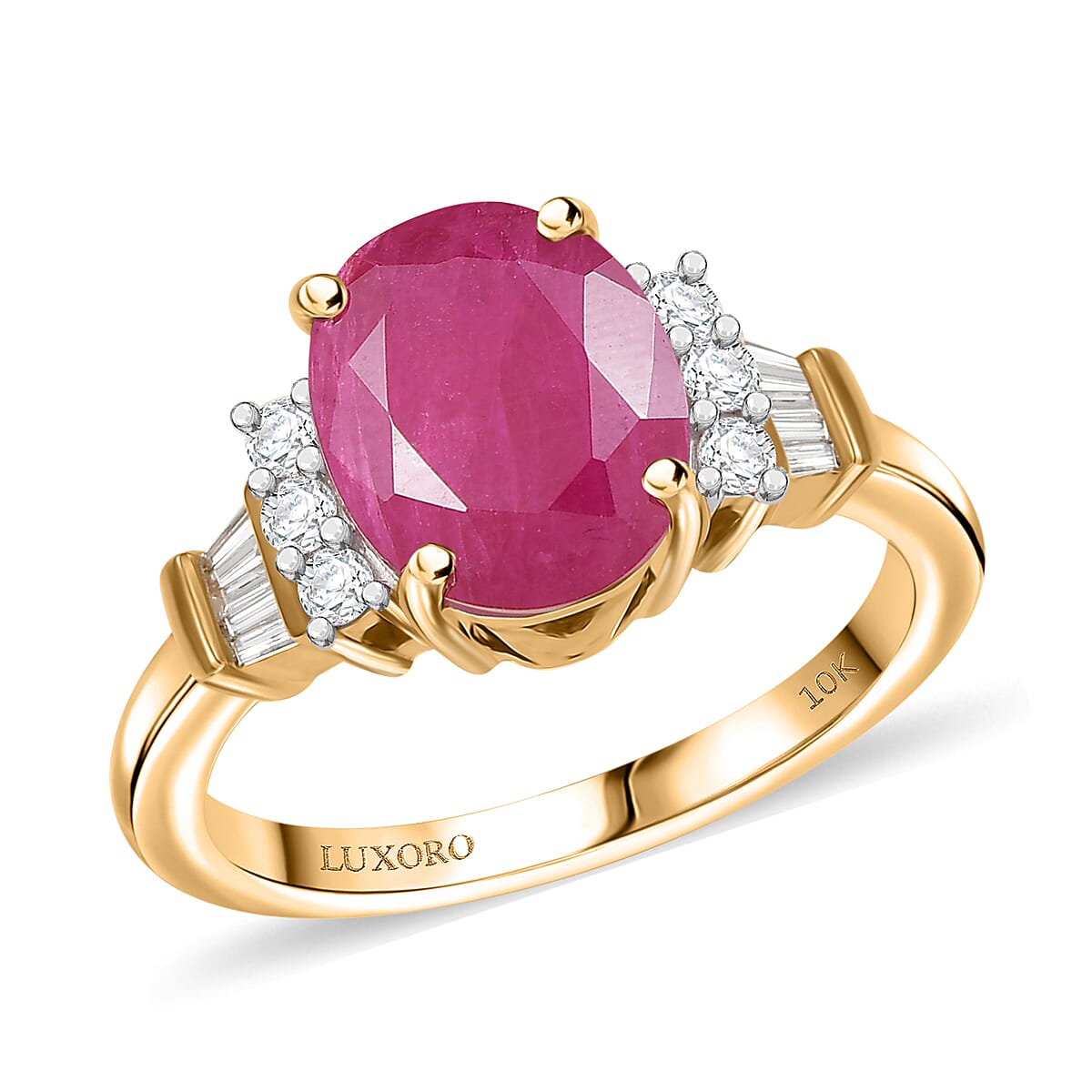 Luxoro AAA Montepuez Ruby and I1 Diamond 3.70 ctw Ring in 10K Yellow Gold (Size 9.0)