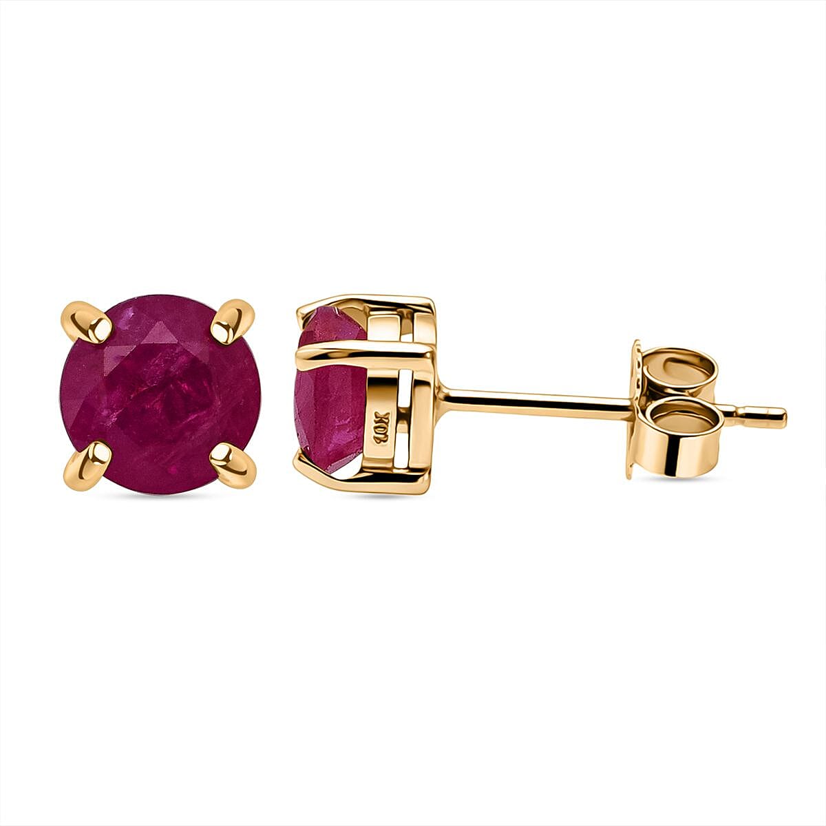 Luxoro AAA Montepuez Ruby Solitaire Stud Earrings in 10K Yellow Gold 1.30 ctw