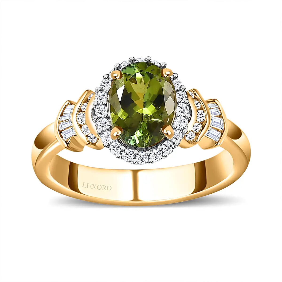 Sweep into a tale of romance and valor with the Luxoro AAA natural Calabar green tourmaline ring. Its halo design, reminiscent of historical crowns, merges with the verdant embrace of the oval gemstone. Encased in 14K yellow gold and crowned with diamonds, this ring doesn't just adorn; it speaks of adventures, of love stories written in bold strokes and whispered promises.