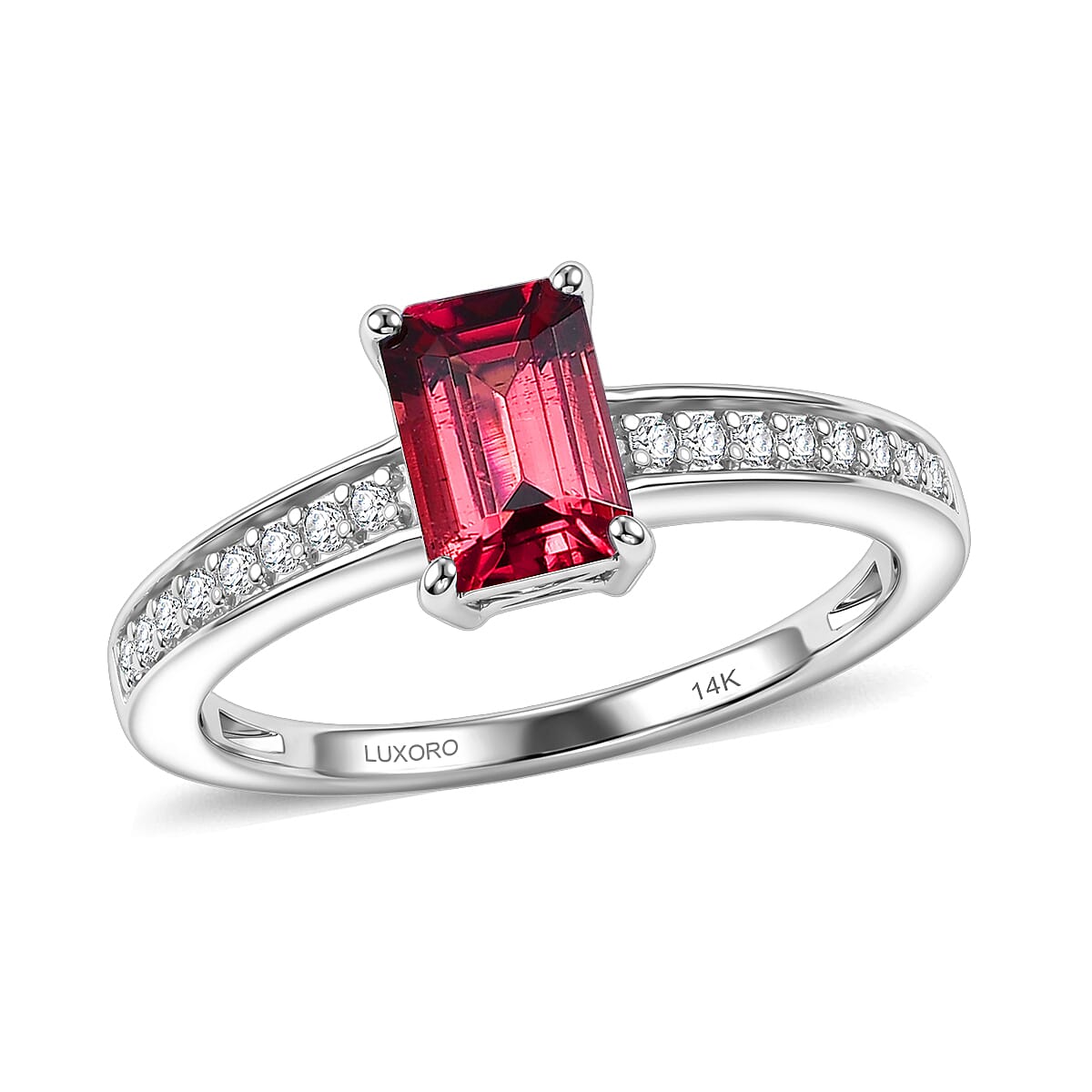 Luxoro AAA Ouro Fino Rubellite and Diamond I2 1.25 ctw Ring in 14K White Gold (Size 5.5)
