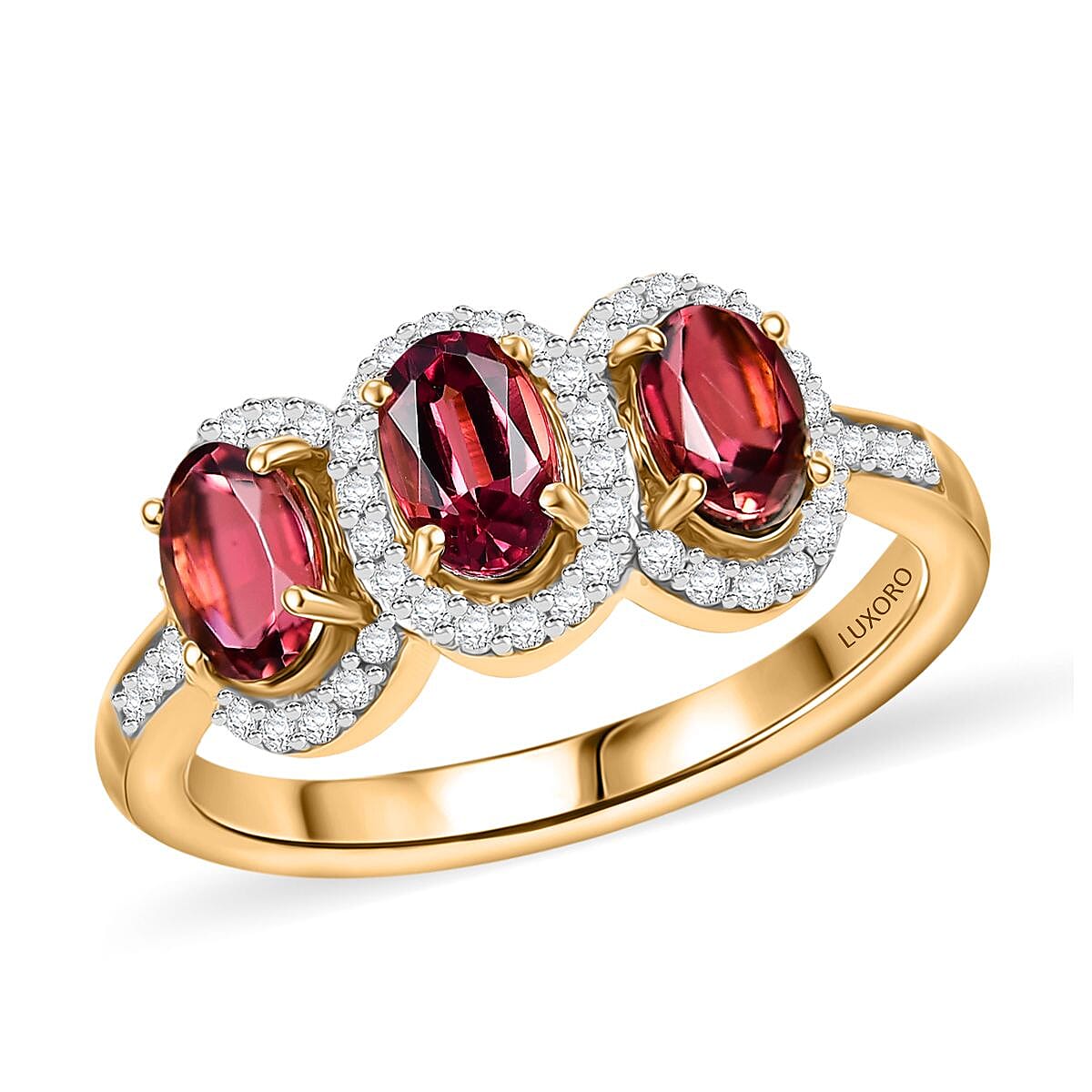 Showcase sophisticated charm with this Luxoro rubellite ring in 14K yellow gold. This trinity ring vivid pink gemstone radiates exceptional luxury and feminine appeal. You'll appreciate how this 14K yellow gold jewelry piece complements your distinctive style.